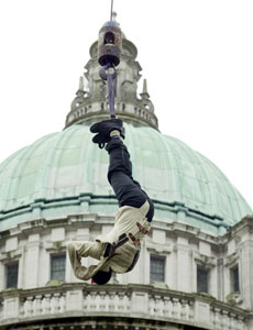 | Clowns Musicians Burlesque Street Entertainment | Magicians Balloon Modellers Facepainters Children's Entertainers |  | Aerialists Falling Apart (Tumble Circus) Based in Belfast A stunning, seven minute highly-skilled comedy duo trapeze act. A dynamic display of total trust, physical strength and no clear idea of what is happening. The perfect piece for creating audible gasps. | Barren Carrousel Based in Belfast The last remaining members of this 27th generation circus family will dazzle you with death defying aerial feats! Ravishing Ruby Too Shoes has devoted her life to perfecting her art and setting impossibly high standards that only she can achieve. Her daughter Tulip, a child prodigy, desperately attempts to live up to her mother's expectations, only to be upstaged by her two left feet. Prepare to be amazed by their bandwagon of circus antics. Beautiful duo aerial hoop and trapeze routine from the gorgeous Barren Carrousel girls. Be amazed as they perform feats of incredible dexterity and grace - all suspended far above the ground! | The Escape (Tumble Circus) Based in Belfast Houndini is dead and David Copperfield is too expensive. Meet Kenneth Fall, Ireland's most inexpensive and still alive escape artist. Hanging 20 metres above the safety of the ground from the end of a burning rope. A death defying comedy of implausible consequences. | Knot Smart (Tumble Circus) Based in Belfast Knot Smart - circus, comedy, entertainment. "Give a fool enough rope and he will hang himself". A deeply superficial gawk at the tragic soul of a man on a quest to recreate love. | Dreamweaver (Tumble Circus) Based in Belfast An aerial performance weaved in silk and flesh - utter magic. Featuring Tina from the award-winning Tumble Circus, it displays inspirational strength and effortless grace. Beauty and peril drop, descend and cling, a visual treat of modern circus skill. Performed as solo act, duo or group. | Lady Hambo (Barren Carrousel) Based in Belfast Let this good time girl whisk you away to the romantic setting of the Music Hall. Weaving her way high above the crowd, in an effortless display of grace and strength. A synchronized duet is also available. | Whirlwind (Barren Carrousel) Based in Belfast An astounding circus act, either solo or as a synchronised duet, the fabulous performers spin precariously at peak velocity. A mind-blowing feat of strength and agility. This act will have you on the edge of your seat. | Rag Dolls (Barren Carrousel) Based in Belfast Watch out! A tattered pair of patchwork rag dolls have escaped from the toy box! They come to life, with limbs locked and hanging by a thread in this beautiful, double acrobatics, hand-balancing or aerial silks routine. |