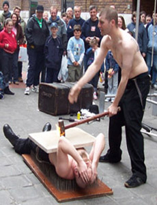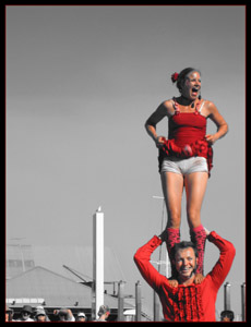 | Back to Carnival Menu >> |  | Burlesque Birds of Paradise (Barren Carrousel) Based in Belfast Straight from an 80's time warp, this wacky duo will whip you into a frenzy as they frolic, flip and freak out. An outstanding doubles contortion act. | Violet Vixens (Barren Carrousel) Based in Belfast This amazing acrobatic and contortion act will make you gasp and giggle. Another fabulous contortion act from the Barren Carrousel girls. |  | Back to Carnival Menu >> |  | Street Entertainment UpAbove (Tumble Circus) Based in Belfast Witness a beautiful disaster in mid-air. Extreme circus skill, inventive humor and exhausting talent. Slapstick acrobatics, hazardous aerial and flying hula hoop all performed around a 7m high free standing trapeze rig. Tina Machina and Kenevil invite you on a cultural car crash of circus street theatre. Circus theatre... from the wrong side of feelgood. "This is the sort of act the insurance industry should have banned by now." The Guardian. "Turning the circus tradition upside down." Irish Times. | Barren Carrousel Based in Belfast The last remaining members of this 27th generation circus family will dazzle you with death defying aerial feats! Ravishing Ruby Too Shoes has devoted her life to perfecting her art and setting impossibly high standards that only she can achieve. Her daughter Tulip, a child prodigy, desperately attempts to live up to her mother's expectations, only to be upstaged by her two left feet. Prepare to be amazed by their bandwagon of circus antics. Beautiful duo aerial hoop and trapeze routine from the gorgeous Barren Carrousel girls. Be amazed as they perform feats of incredible dexterity and grace - all suspended far above the ground! | The Balloonatic Based in Newcastle upon Tyne, England The Balloonatic is the Playful Buffoon with a Giant Balloon! This quirky and loveable character inflates and climbs inside a giant balloon in what has been described as a celebration of silliness. Laugh out loud at his original comedy routine that has been seen on TV screens, festivals, stages and at major events on four continents. A crowd-pleasing favourite with audiences all over the world. | Cannonball (The Fanzinis) Based in IrelandGuido and Ronaldo Fanzini, inspired by the mountains of Venice and the canals of the Italian Alps, present their new show Cannonball Circus. With no expense spared, with no concern for their safety, they laugh in the face of danger. Haha, indeed. They have ripped up the budget to bring you an amazing variety of acts - dancing ladies, a motorbike wall of death, the flying trapeze, and the world famous Moroccan chicken throwers. But wait, what's this? Ronaldo has spent the entire budget on a gargantuan cannon! There is no money left for the acts! The show must go on, but what will they do...? | Rusty and Shuggie Based in BelfastThe Rusty and Shuggie show is a wonderful physical comedy double act, performed without the use of any language, accompanied by a wonderful musical soundtrack. It involves fantastic traditional circus skills presented using everyday objects and props. In its essence, this is a show which looks through the eyes of two loveable slapstick clowns as they deal in their own dramatic style with friendship, temptation, romance, love, loss, tragedy and redemption. This is a show for all the family, and a must see for all lovers of the absurd. | The Grundy Brothers Based in BelfastThis charming show draws inspiration from 19th and early 20th century vaudeville style shows. Gasp in amazement as they perform feats of equilibristic manipulation. Gape with wonder as the be-hatted gentlemen escape from straight jackets and smash flaming concrete slabs on themselves whilst lying on a bed of nails. Gaze with open mouths as they eat and juggle fire. Groan as they display their unique linguistic acrobatics - (that's tell jokes). | Jitterbug Jackson Based in BelfastJitterbug Jackson is the latest alter-ego of renowned performer, Hugh Brown, who has thrilled and engaged audiences across the globe for the last 14 years. In a brand new solo spectacle, many shall witness this most versatile of street raconteurs in a boogie woogie whirlwind of a show, sure to bring a smile to even the most sceptical of folk. Jitterbug will jive to and juggle with all manner of props and paraphernalia. A lucky volunteer will even enjoy the blindfold ladder/balance egg challenge (not quite as messy or dangerous as it sounds!!) The show climaxes with the amazing sight of everyone delighting in a session of Jitterbugaerobics. A must see for people of all shapes and sizes! | Myles Long Based in IrelandThe most entertaining stiltwalking/juggling acts around. Amazing juggling and interactive comedy routines. Great fun for kids and adults. Perfect for corporate launches and anywhere you want to create an attraction. | Grounded (Tumble Circus) Based in BelfastOne suitcase, six clubs and 40 minutes of circus, slapstick, and comedy. Incredibly talented, stunningly technical and very, very stupid. | Ruby and Tulip (The Barren Carrousel) Based in BelfastThe last remaining members of this 27th generation circus family will dazzle you with back cracking contortions! Ravishing Ruby Too Shoes has devoted her life to perfecting her art and setting impossibly high standards that only she can achieve. Her daughter Tulip, a child prodigy, desperately attempts to live up to her mother's expectations, only to be upstaged by her two left feet. Prepare to be amazed by their bandwagon of circus antics.. | Steve Mischief Based in Newcastle upon Tyne, EnglandSteve Mischief has taken street theatre and public spectacle all over the world. His particular brand of entertainment encourages active participation and sees him in great demand as a compere and host. His family-friendly, yet mischievous character combines comedy, circus skills and sideshow with quirky tricks and a healthy knowledge for interesting trivial factoids. Physical skills include whip-cracking, clowning