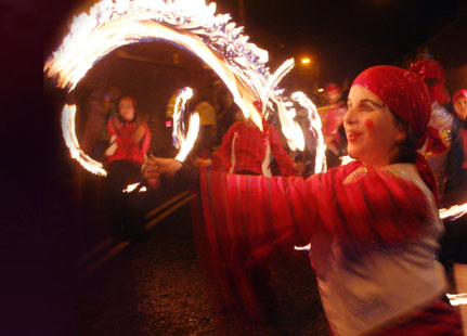 FirePoise have worked closely with our city and local councils over the past few years From regular performances for Belfast City Council at their Enchanted Evening and Halloween events, to workshops and fire displays for local councils around Ireland - and of course, leading the Dublin St Patrick's Day parade for three consecutive years - we offer reliable performers who are dedicated to bringing excellence to your event. Working With You We can create the display that will best suit your event and audience. We can provide all the requisite paperwork, such as insurance certificates, risk assessments, child protection policies, H&S and environmental policies, and if necessary, a site check to make sure the occasion runs smoothly. Day or Night Fire dancing is a dramatic and eye-catching art form and while we are occasionally employed for day-time performance (for example, at a medieval fair or festival), our performances are at their best in the dark (for example, before a fireworks display, at an evening party, an outdoor music festival, or indoors for a gala/awards night). For Any Event From choreographed fire shows (some using live music), to 'meet and greets' that offer a real warm welcome, from standalone fire displays to children's workshops and parades, we can provide a unique and memorable visual display to inspire your audience. |