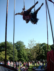 | Clowns Musicians Burlesque Street Entertainment | Magicians Balloon Modellers Facepainters Children's Entertainers |  | Aerialists Falling Apart (Tumble Circus) Based in Belfast A stunning, seven minute highly-skilled comedy duo trapeze act. A dynamic display of total trust, physical strength and no clear idea of what is happening. The perfect piece for creating audible gasps. | Barren Carrousel Based in Belfast The last remaining members of this 27th generation circus family will dazzle you with death defying aerial feats! Ravishing Ruby Too Shoes has devoted her life to perfecting her art and setting impossibly high standards that only she can achieve. Her daughter Tulip, a child prodigy, desperately attempts to live up to her mother's expectations, only to be upstaged by her two left feet. Prepare to be amazed by their bandwagon of circus antics. Beautiful duo aerial hoop and trapeze routine from the gorgeous Barren Carrousel girls. Be amazed as they perform feats of incredible dexterity and grace - all suspended far above the ground! | The Escape (Tumble Circus) Based in Belfast Houndini is dead and David Copperfield is too expensive. Meet Kenneth Fall, Ireland's most inexpensive and still alive escape artist. Hanging 20 metres above the safety of the ground from the end of a burning rope. A death defying comedy of implausible consequences. | Knot Smart (Tumble Circus) Based in Belfast Knot Smart - circus, comedy, entertainment. "Give a fool enough rope and he will hang himself". A deeply superficial gawk at the tragic soul of a man on a quest to recreate love. | Dreamweaver (Tumble Circus) Based in Belfast An aerial performance weaved in silk and flesh - utter magic. Featuring Tina from the award-winning Tumble Circus, it displays inspirational strength and effortless grace. Beauty and peril drop, descend and cling, a visual treat of modern circus skill. Performed as solo act, duo or group. | Lady Hambo (Barren Carrousel) Based in Belfast Let this good time girl whisk you away to the romantic setting of the Music Hall. Weaving her way high above the crowd, in an effortless display of grace and strength. A synchronized duet is also available. | Whirlwind (Barren Carrousel) Based in Belfast An astounding circus act, either solo or as a synchronised duet, the fabulous performers spin precariously at peak velocity. A mind-blowing feat of strength and agility. This act will have you on the edge of your seat. | Rag Dolls (Barren Carrousel) Based in Belfast Watch out! A tattered pair of patchwork rag dolls have escaped from the toy box! They come to life, with limbs locked and hanging by a thread in this beautiful, double acrobatics, hand-balancing or aerial silks routine. |